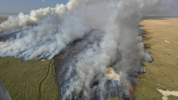 Возгорание на территории государственного природного резервата «Акжайык» могло быть умышленным. По неофициальным данным, очаги пламени возникли сразу в трёх разных точках, а на месте были обнаружены следы автомобильных шин.