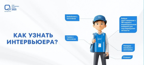Кроме того, удостовериться в личности интервьюера можно на сайте sanaq.gov.kz, введя номер удостоверения в разделе "Поиск интервьюера" или позвонив в единый контакт-центр 1446 и уточнить информацию.