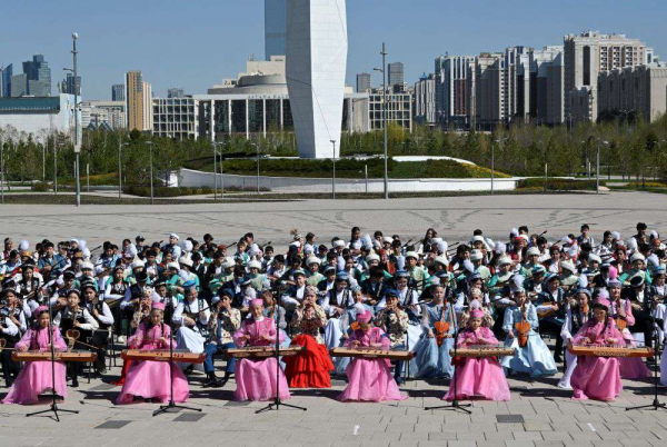В столице у подножия сферы «Нур Алем» в преддверии 1 Мая – Дня единства народа Казахстана – около 2 000 столичных школьников в возрасте от 10 до 16 лет стали участниками грандиозного флешмоба «Казахстан – наш общий дом». Они объединились в оркестр, где национальные и классические инструменты звучали в унисон.