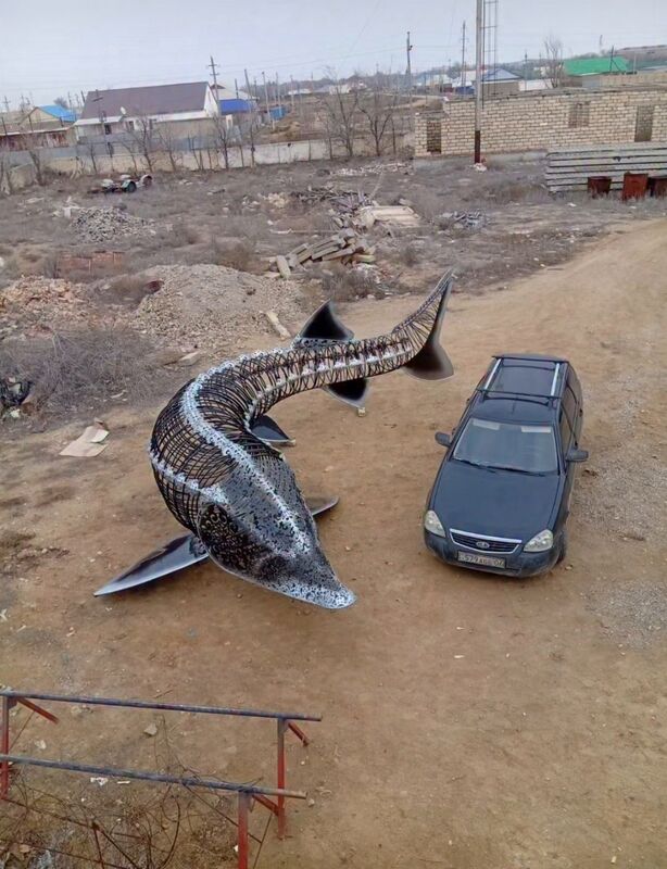 Недавно Азамат завершил арт-объект — огромную красную рыбу. Сфотографировался со своим детищем и выложил в сеть. Что тут началось! Восхищались все.